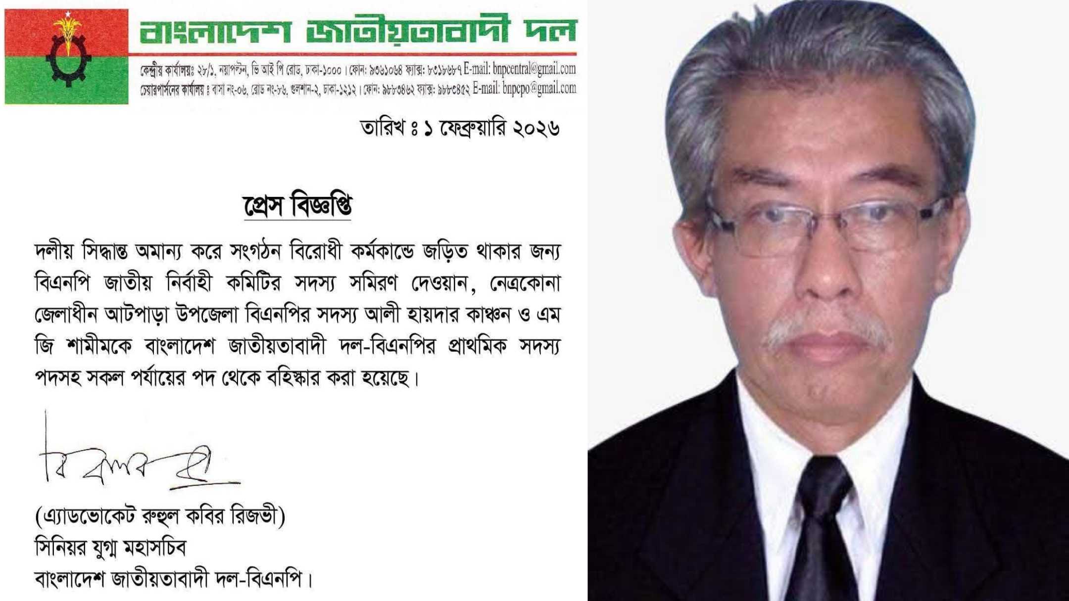 বিএনপির সিনিয়র যুগ্ম মহাসচিব রুহুল কবির রিজভীর স্বাক্ষরিত বিজ্ঞপ্তিতে আরও উল্লেখ করা হয়, দলের শৃঙ্খলা ও আদর্শ পরিপন্থী যেকোনো কর্মকাণ্ডের বিরুদ্ধে বিএনপি কঠোর অবস্থানে রয়েছে এবং ভবিষ্যতেও এ ধরনের কার্যকলাপে জড়িতদের বিরুদ্ধে সাংগঠনিক ব্যবস্থা অব্যাহত থাকবে।