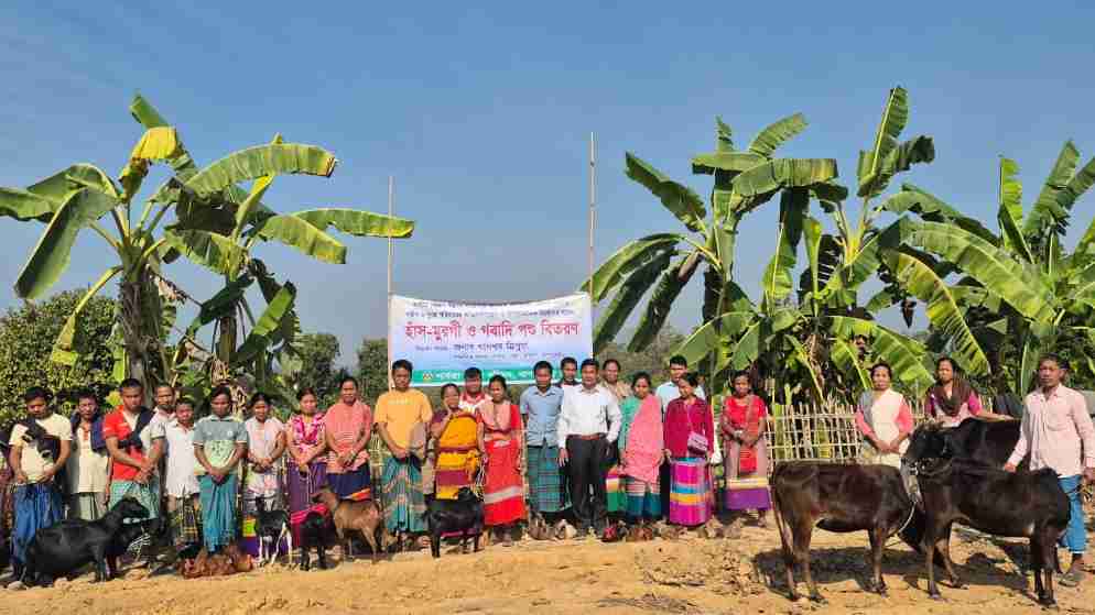 প্রান্তিক পাহাড়ি জনপদের নিরব সকালে হঠাৎ যেন বদলে গেল চিত্র। পাহাড়ঘেরা পাড়ার কাঁচা পথে আজ খালি হাতে নয়,হাঁস, মুরগি, গরু আর ছাগল নিয়ে বাড়ি ফিরছেন অসহায় পরিবারের সদস্যরা। কারও চোখে আনন্দের জল, কারও মুখে নতুন জীবনের স্বপ্ন।