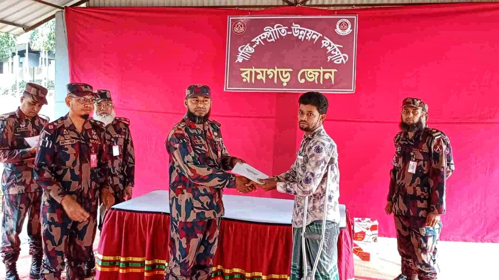 আজ বৃহস্পতিবার (১২ মার্চ ২০২৬) রামগড় বিজিবি জোন সদর দপ্তরে আয়োজিত এক অনুষ্ঠানের মাধ্যমে এসব সহায়তা প্রদান করা হয়।